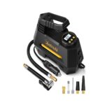 - BUY WITH CONFIDENCE: Gifts for men women. Easily stow the compressor away in your car or garage and it will be ready to use at a moment’s notice. Package includes 1* digital air compressor, 1* Replacement Fuse, 2x Air Nozzle Cones, 1* Needle Valve Adapter 1* Presta to Schrader Adapter, 1* Extension Hose Coupling, 1* User Manual; If you have any questions or concerns, please feel free to contact us.