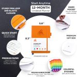• UNDATED & UNIQUE LAYOUTS – An important feature of this planner is that it is undated; so, unlike most dated planners, you can start using it at any time of the year without wasting a page – it’s totally up to you to fill in the months and dates. That is why by design all 12 months come right up front and are then followed by the separate 52 weeks. Use 3 colorful ribbons to flip between weekly and monthly spreads.