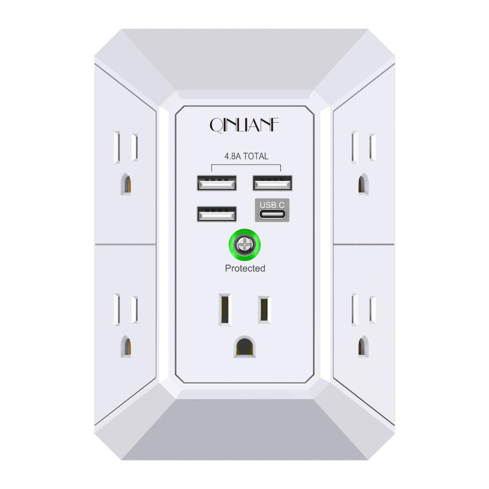 - 【 Multi Function USB Outlet】- Securing onto the wall design. Fit duplex outlet perfectly, just plug in to use. You get 5 AC outlet splitter (3 sides) with wide space in between; 4 USB charger ports; using the screw at the middle to secure it onto the wall for duplex outlet, so it is not pulled out when pulling the plugged in devices and loss power. Note: this works on duplex outlet only, other types of outlet like GFCI outlet cannot be secured onto the wall.Best Ideal Stocking Stuffers for Adults.